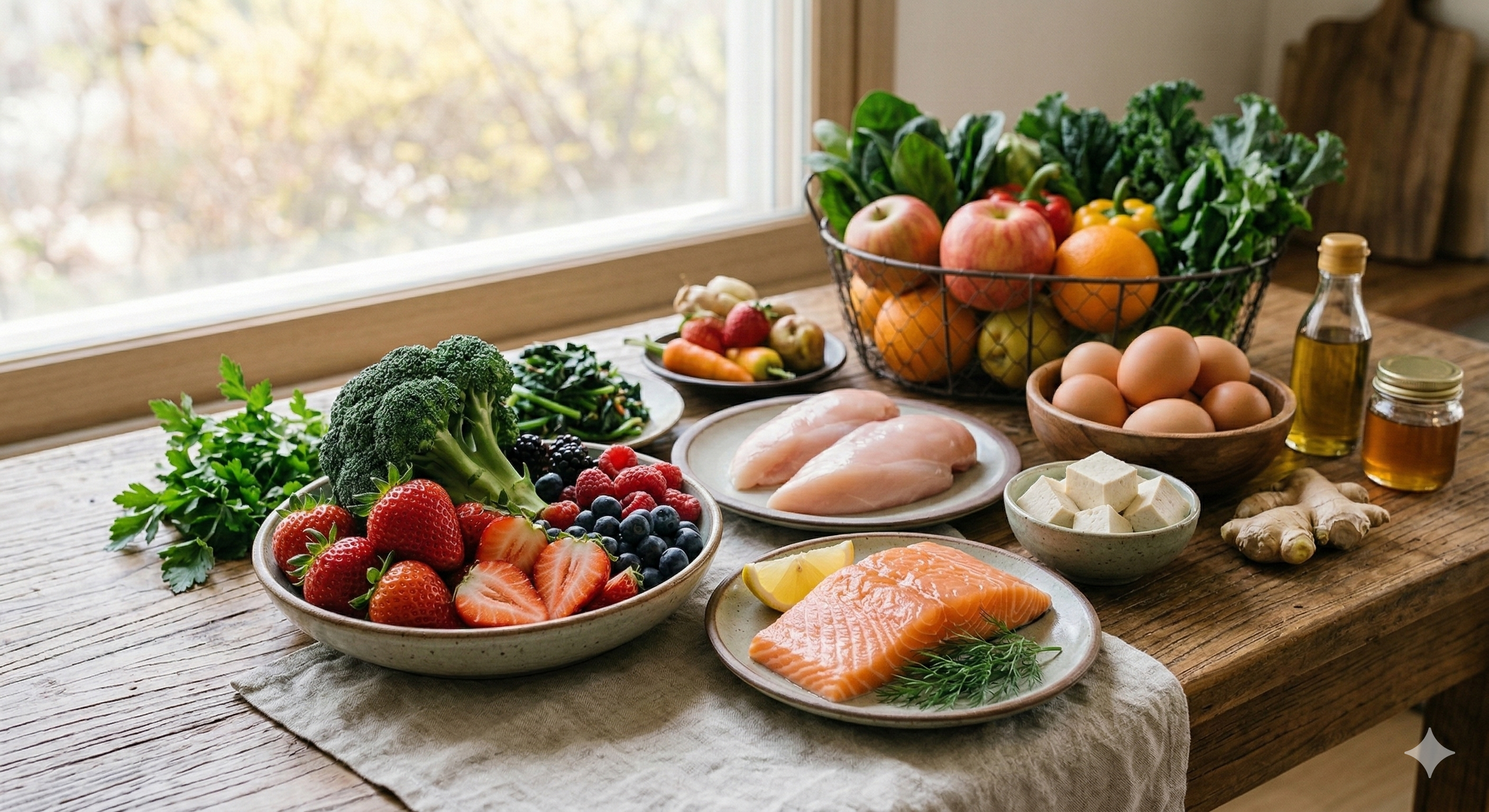 • 비타민 C: 강력한 항산화제로 면역 세포 기능을 증진시켜요 (브로콜리, 딸기 등)